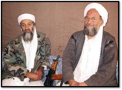 Osama bin Laden, with AKS-74U carbine, and Ayman al-Zawahiri in November 2001. Photo credit: The Daily Beast.