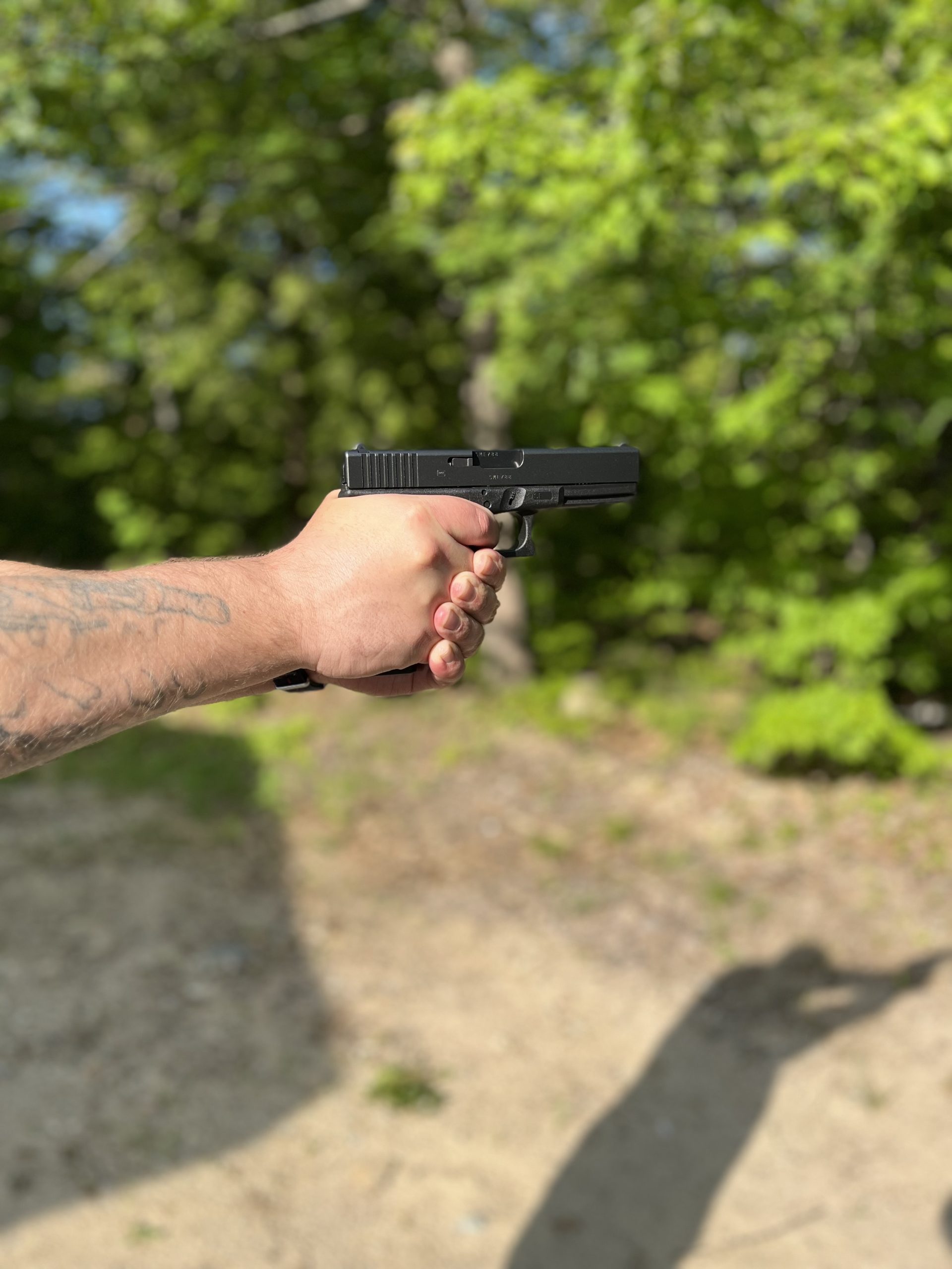 To test grip texture, I coat my hands in mineral oil to simulate blood. The Glock 21 was slick in my hands, in a one- and two-handed grip. I was still able to control it and hit my target. I had to adjust my grip multiple times during rapid fire which was detrimental to accuracy.